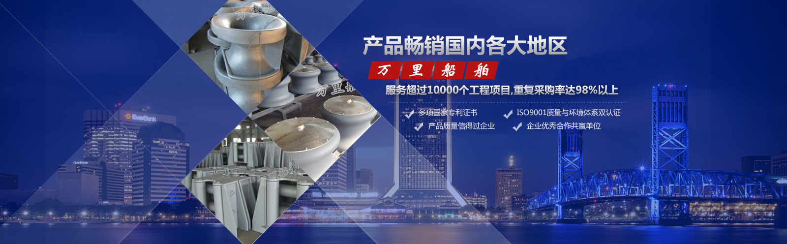 泰州市萬里船舶機械制造有限公司位于姜堰市西郊橋頭工業(yè)集中區(qū),東臨寧靖鹽高速公路,南傍寧啟鐵路及328國道,距泰州火車站10公里,交通十分便利。 本公司是一家研制生產(chǎn)各類船用系泊設(shè)備、舾裝設(shè)備的專業(yè)廠家,所生產(chǎn)產(chǎn)品品種齊全、質(zhì)量可靠。其中導纜器、導纜滾輪、導纜孔、帶纜樁、棄錨器、人孔蓋、導鏈滾輪廣泛應用于國內(nèi)各大船廠,同時外銷日本、韓國、西班牙、意大利、臺灣等國家及地區(qū)。本公司已獲得中國(CCS)船級社認可、英國(LR)船級社認可,美國(A···